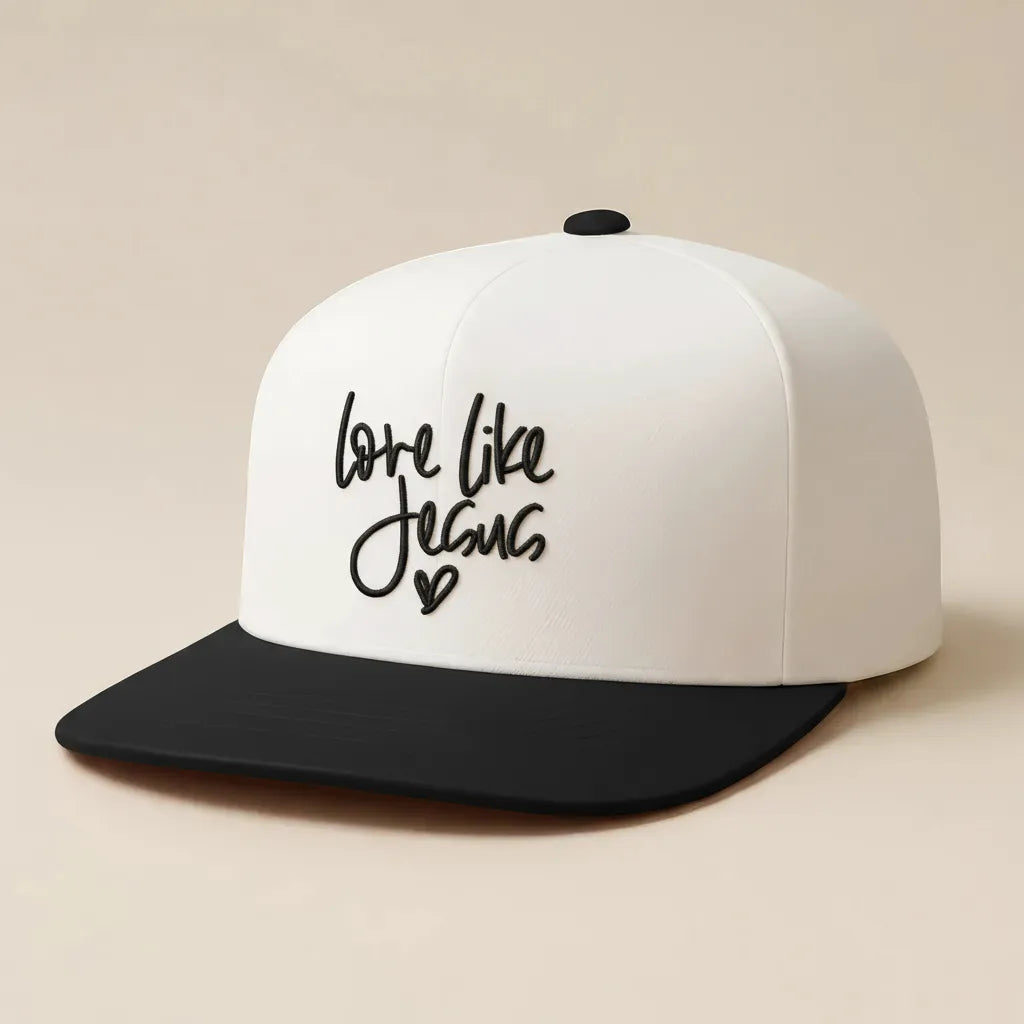Spread kindness and wear your faith proudly with our Love Like Jesus embroidered hat. Designed in a clean, modern script with 3D puff stitching, this cap brings a boutique look with a bold message of love and grace.
